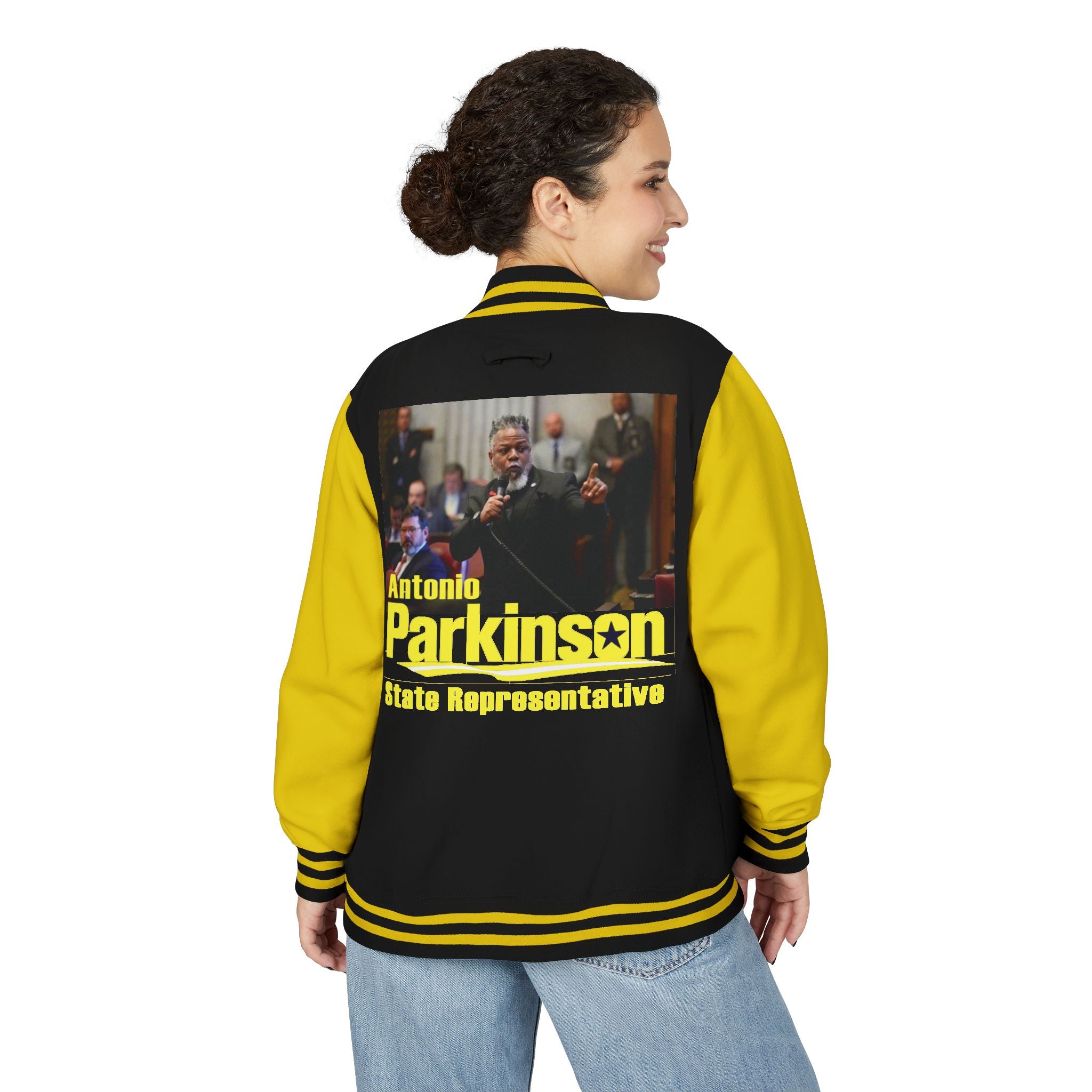 This letterman jacket is designed for supporters and friends of State Representative Antonio Parkinson to show their bold and courageous support. Made from soft and pleasant to touch fabric, with a medium-heavy weight. Perfect for wearing to political events or casual outings.